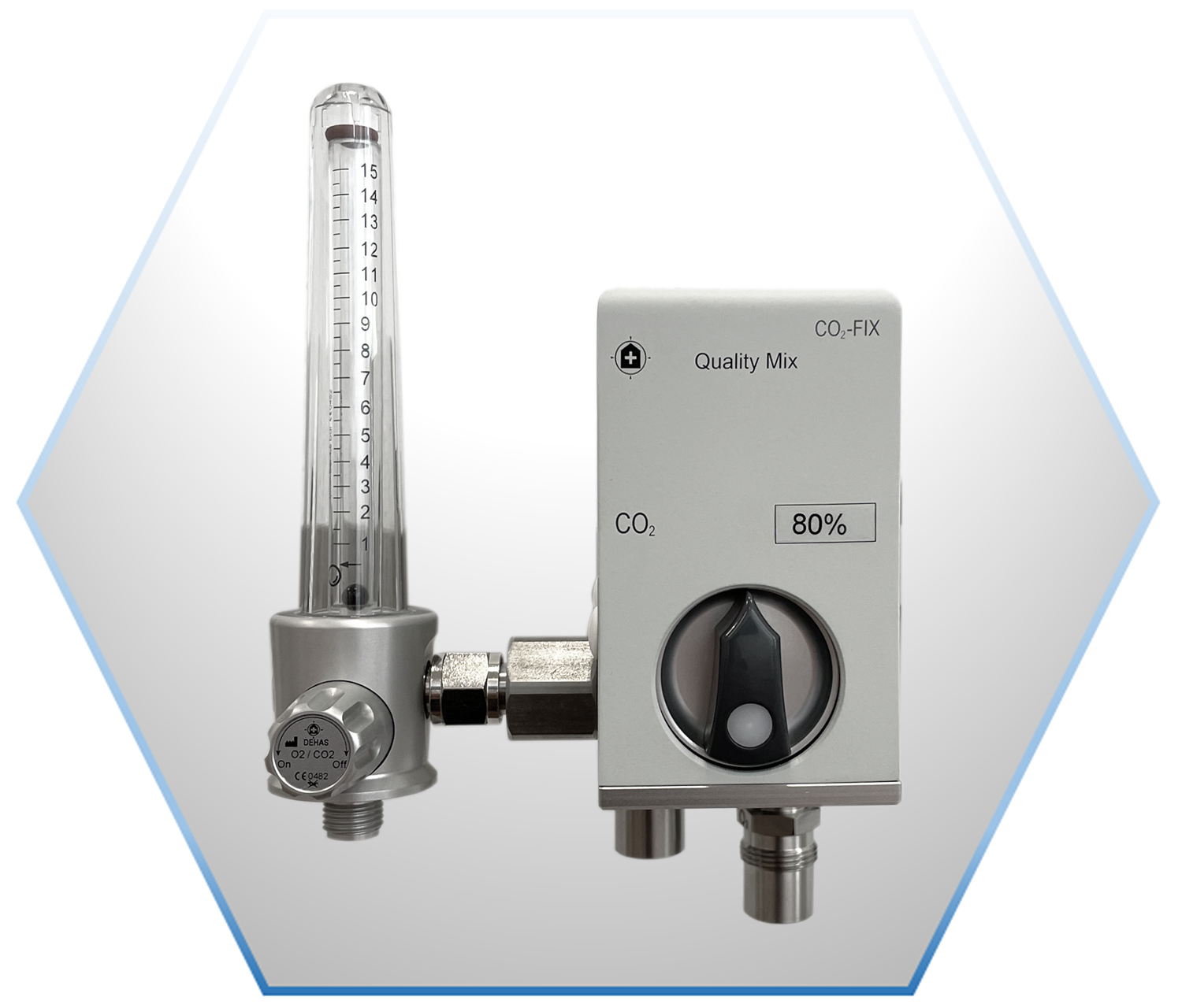 Nuestro mezclador de CO2 para aplicaciones de laboratorio. El mezclador proporciona una proporción fija de mezcla de dióxido de carbono y oxígeno que se ajusta individualmente según los requisitos del cliente. La cantidad extraída se puede ajustar con precisión en cualquier momento mediante el caudalímetro conectado y la proporción entre oxígeno y dióxido de carbono permanece constante de forma fiable. > DIFERENTES CONCENTRACIONES POSIBLES