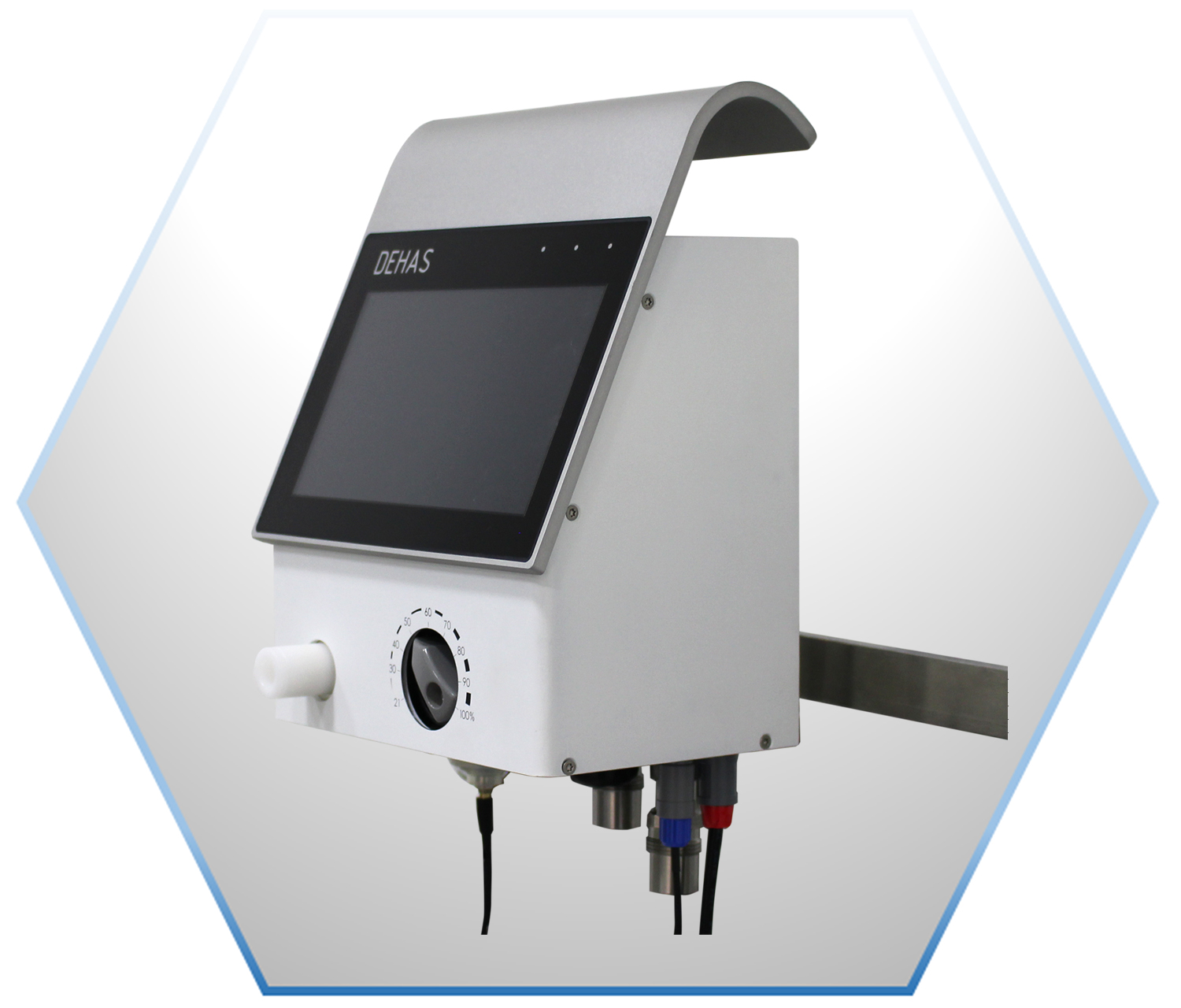 Innovation und Know-how in Druck und Durchfluss von DEHAS. Das Grundmodul des QualityMix Blenders ist ein 2-Kammer-Mischsystem für Sauerstoff und Luft...